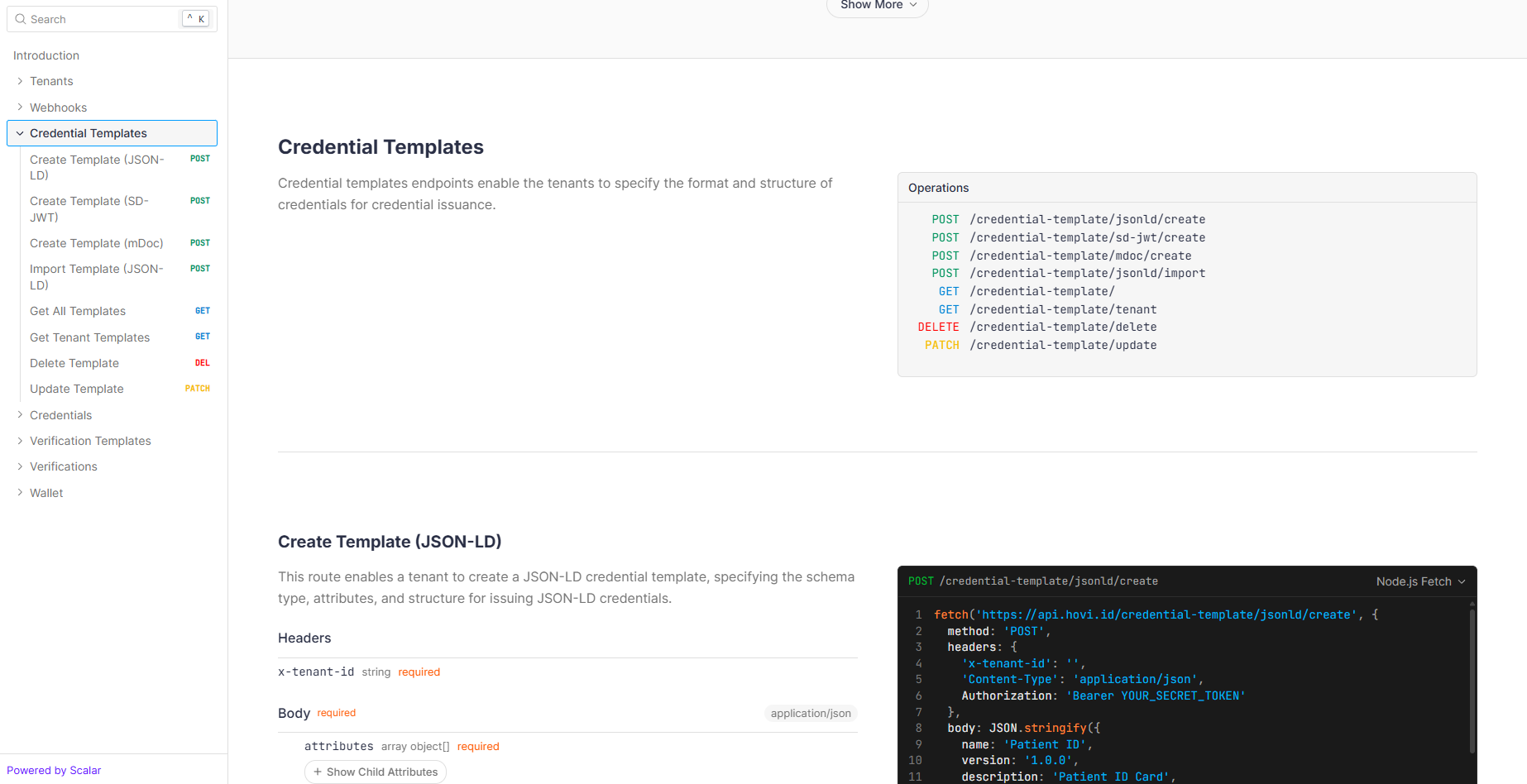 Hovi’s Credential Template endpoints allow you to create, import, delete, update and retrieve these reusable templates. For more information, please visit here.