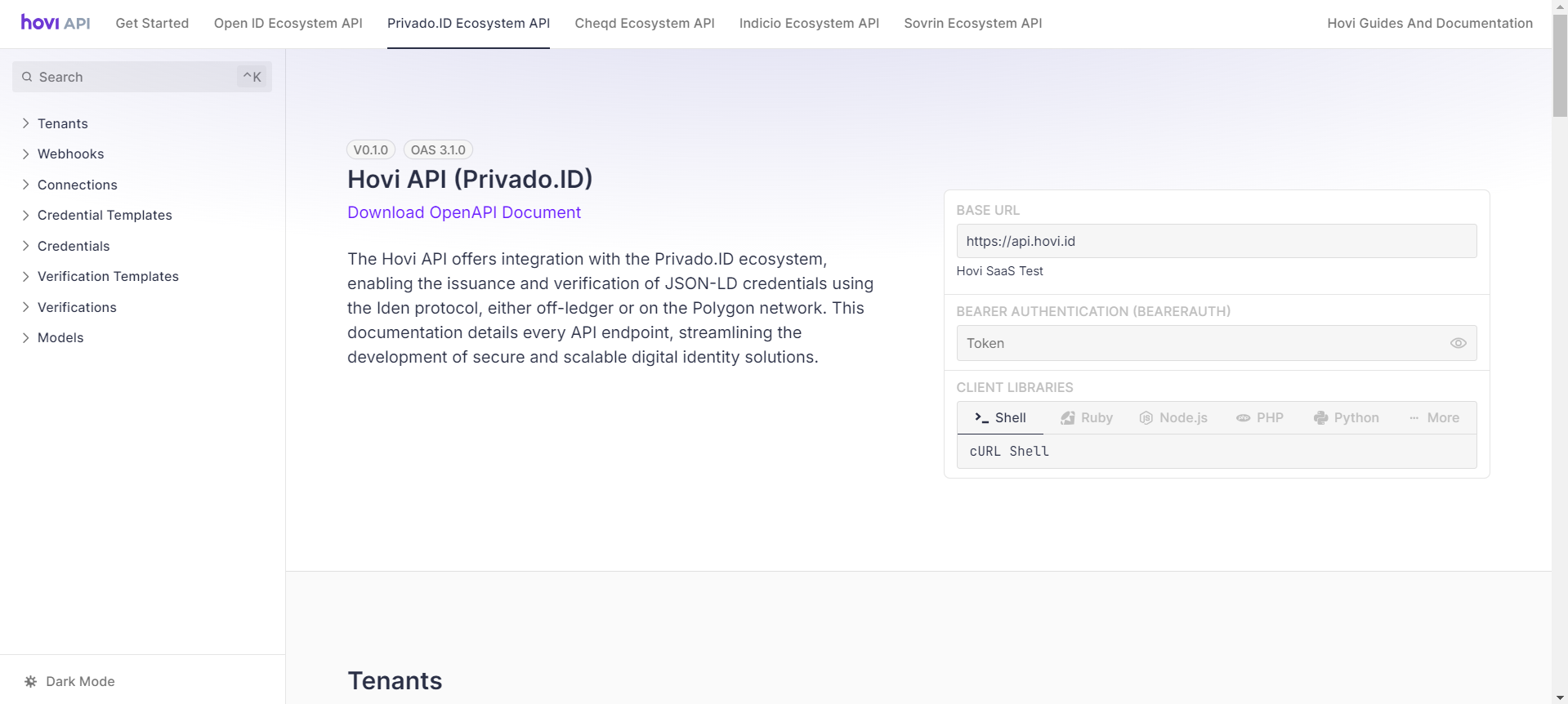 Hovi's Credentials endpoints enable tenants to issue verifiable credentials based on predefined Credential Templates. These endpoints can be used to retrieve and issue credentials that recipients or holders can store securely in digital wallets, such as the Hovi Wallet or any other supported wallet (refer to Hovi Supported Wallets). Once stored, the credentials can be shared with verifiers when needed.