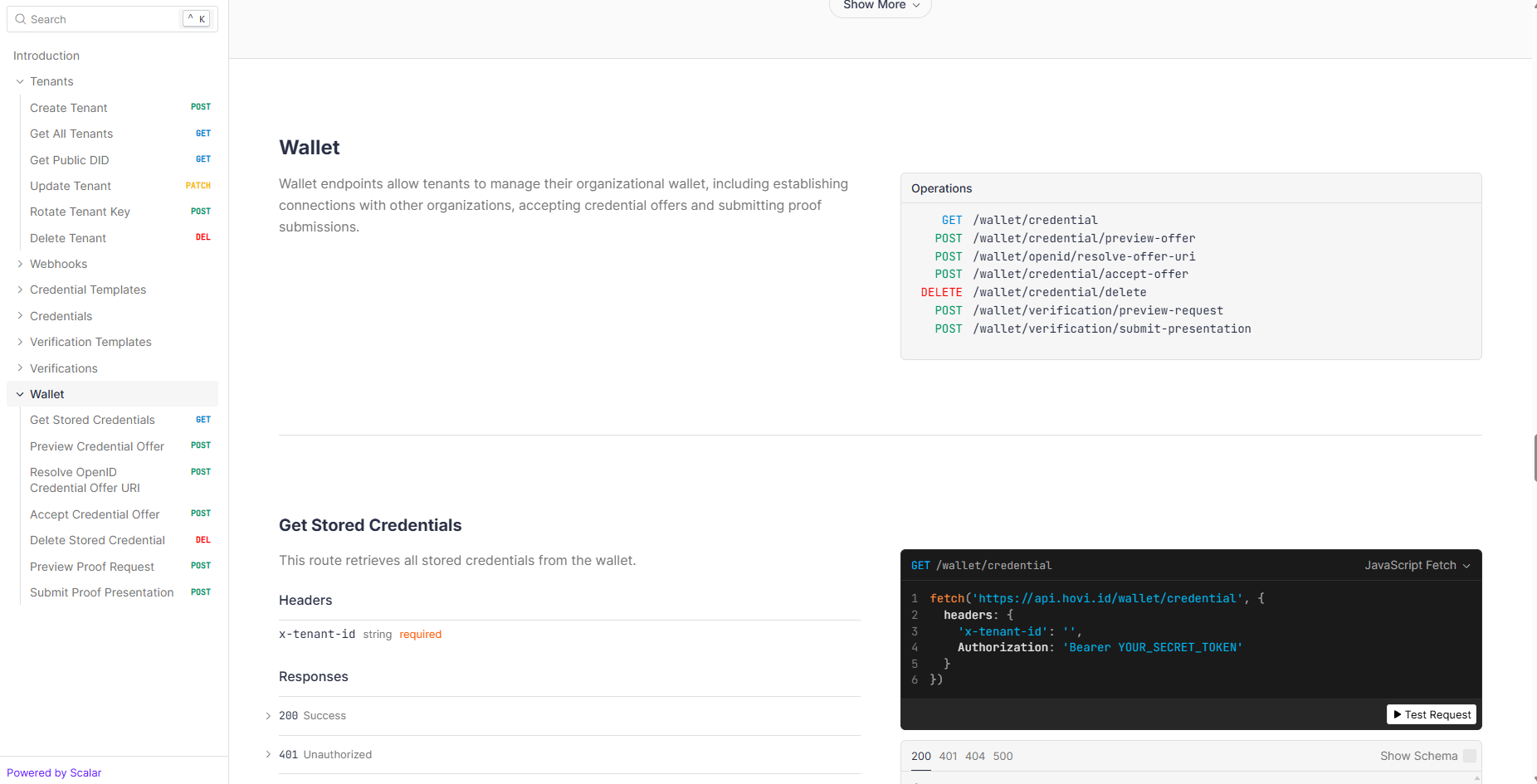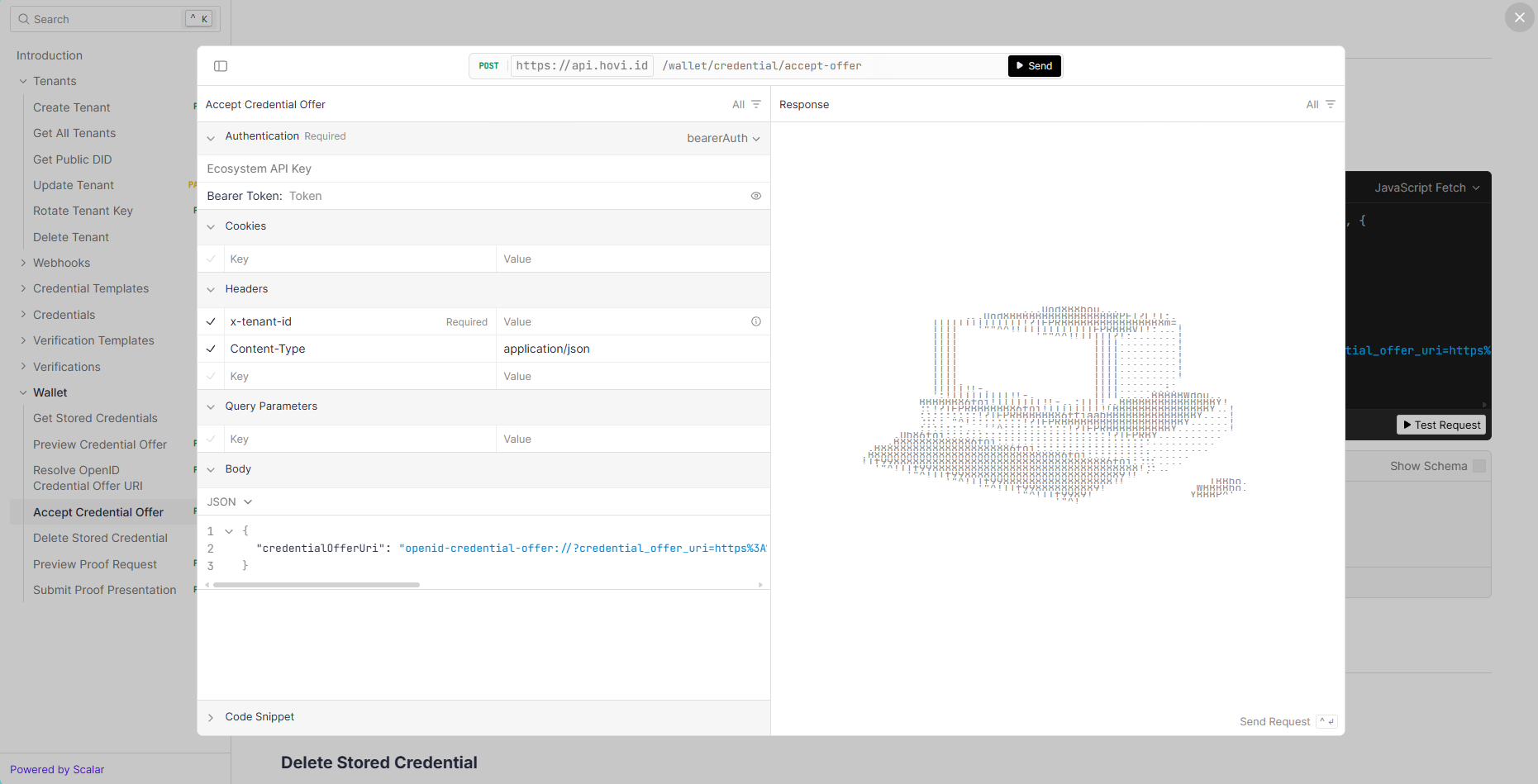 Hovi’s Wallet endpoints allow you to get stored credential, preview, resolve OpenID Credential Offer URI, accept, delete stored credential and more. For more information, please visit Business Wallet Reference.