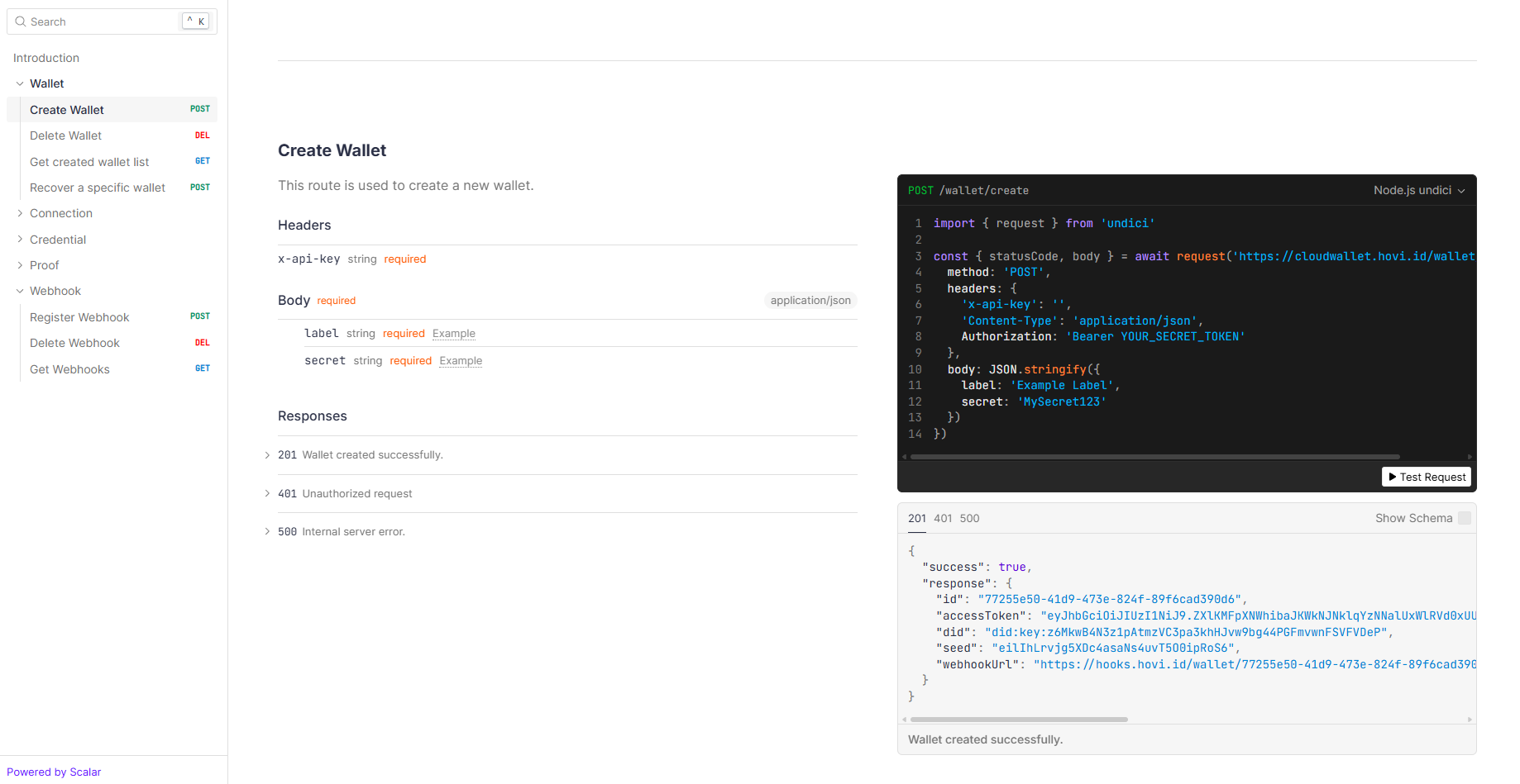 - Visit the Hovi Cloud Wallet API Reference.