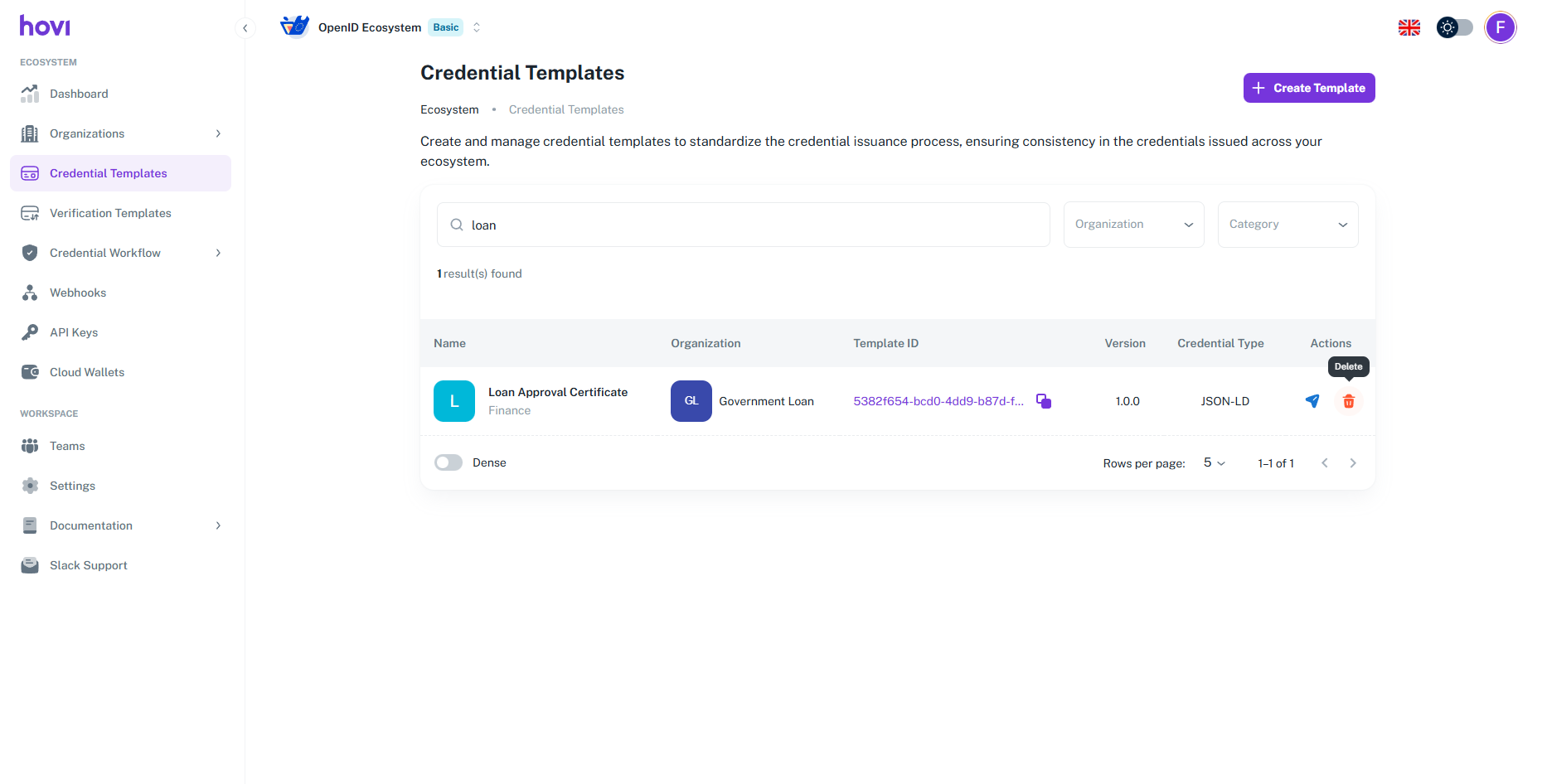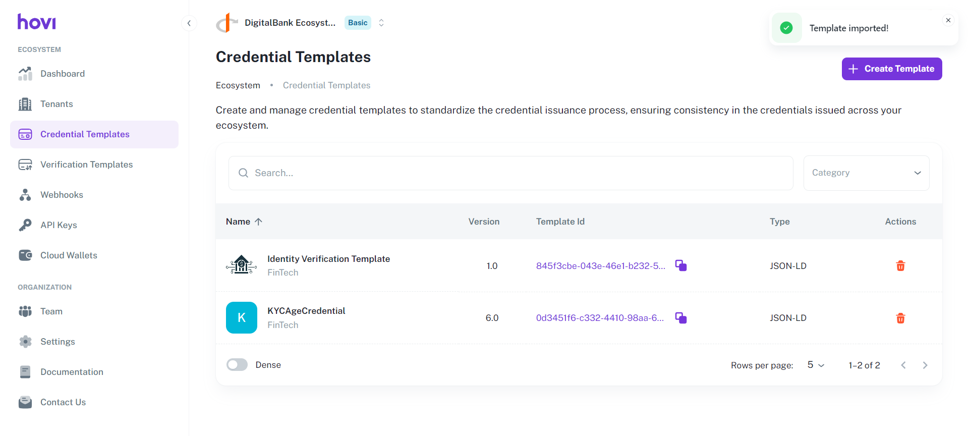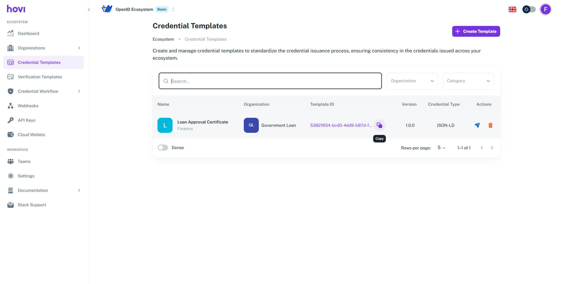 View Templates: All credential templates within your ecosystem are listed here. You can click on any template to view its details.