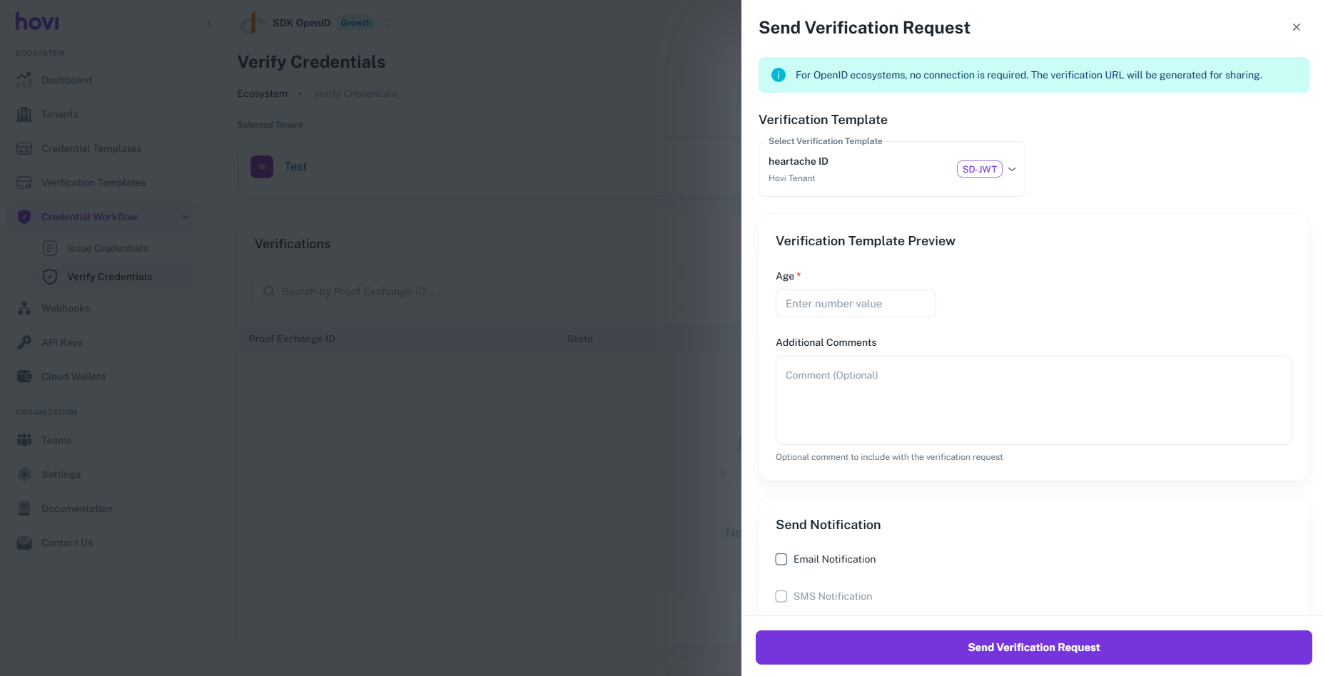 Follow these steps to verify a credential in Hovi Studio for OpenID ecosystem.