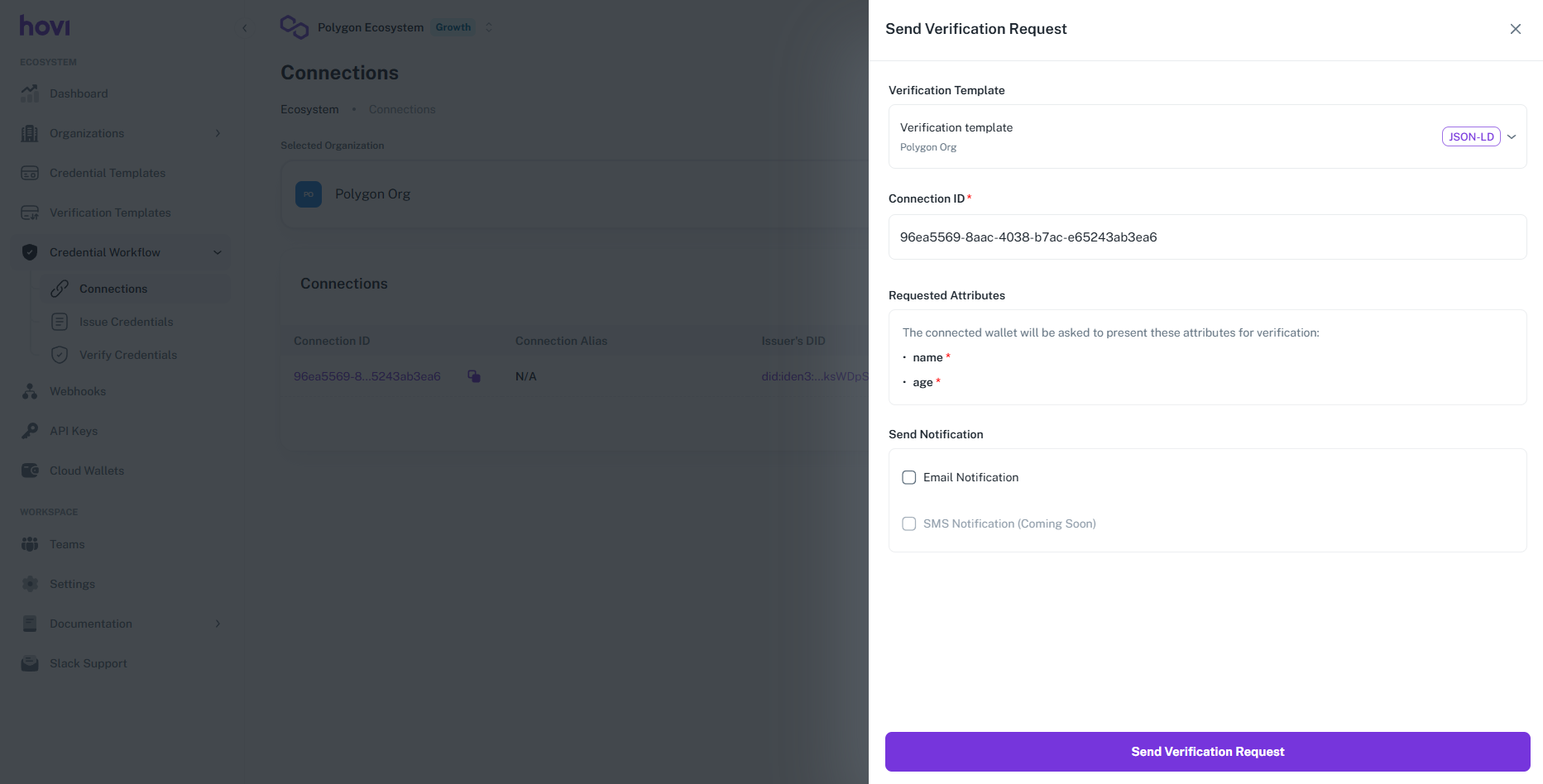 Select verification template, connection and put verification template preview and then click on Send Verification Request.