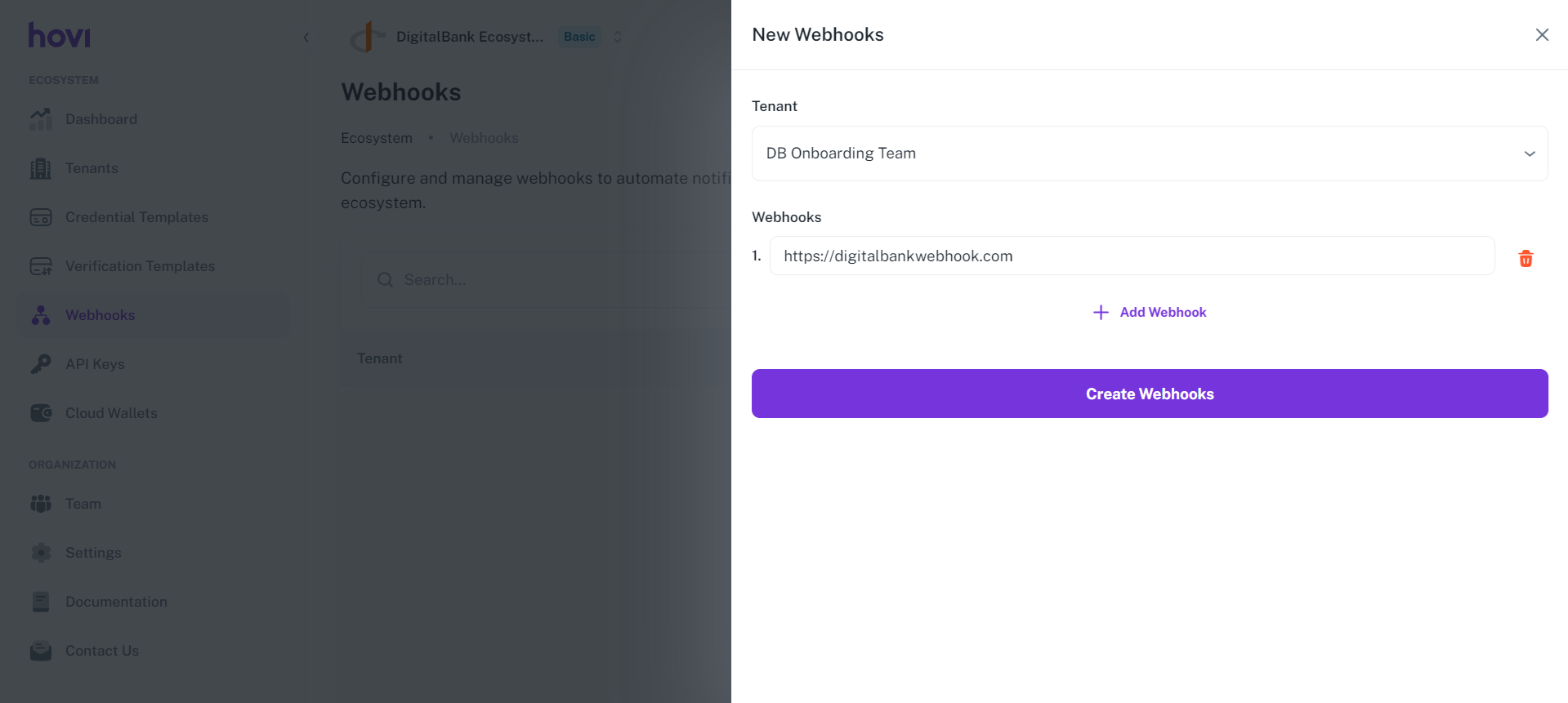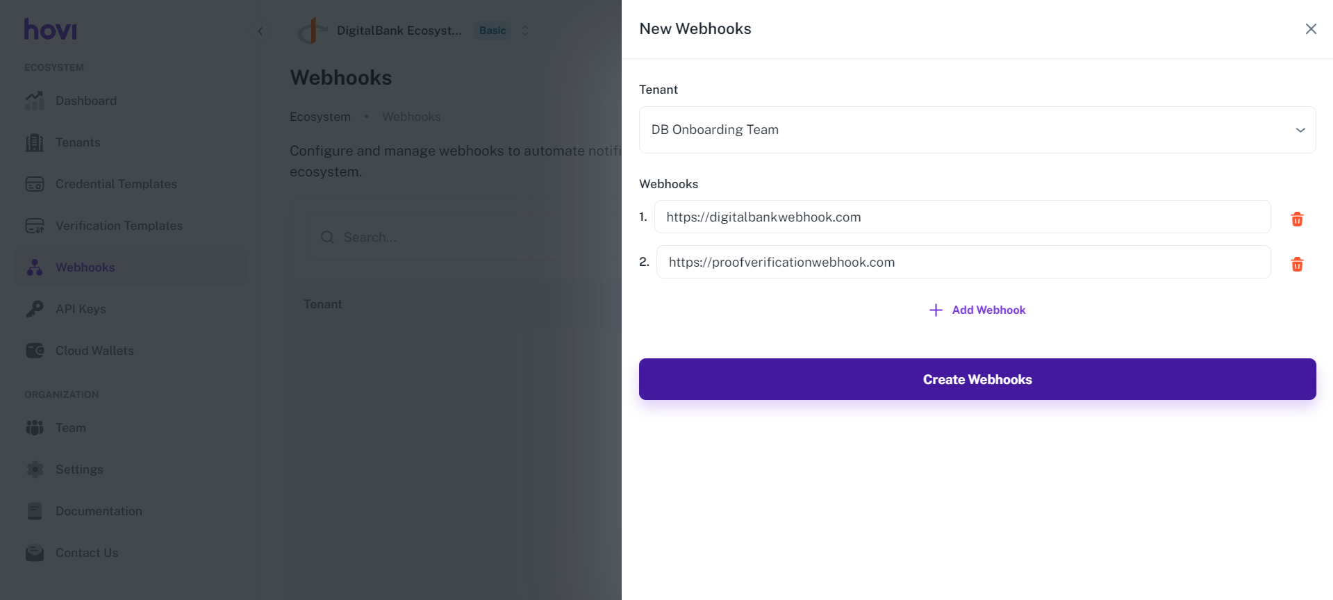 If you need to configure multiple webhook URLs, click “Add Webhook” to add additional URLs for the same organization.